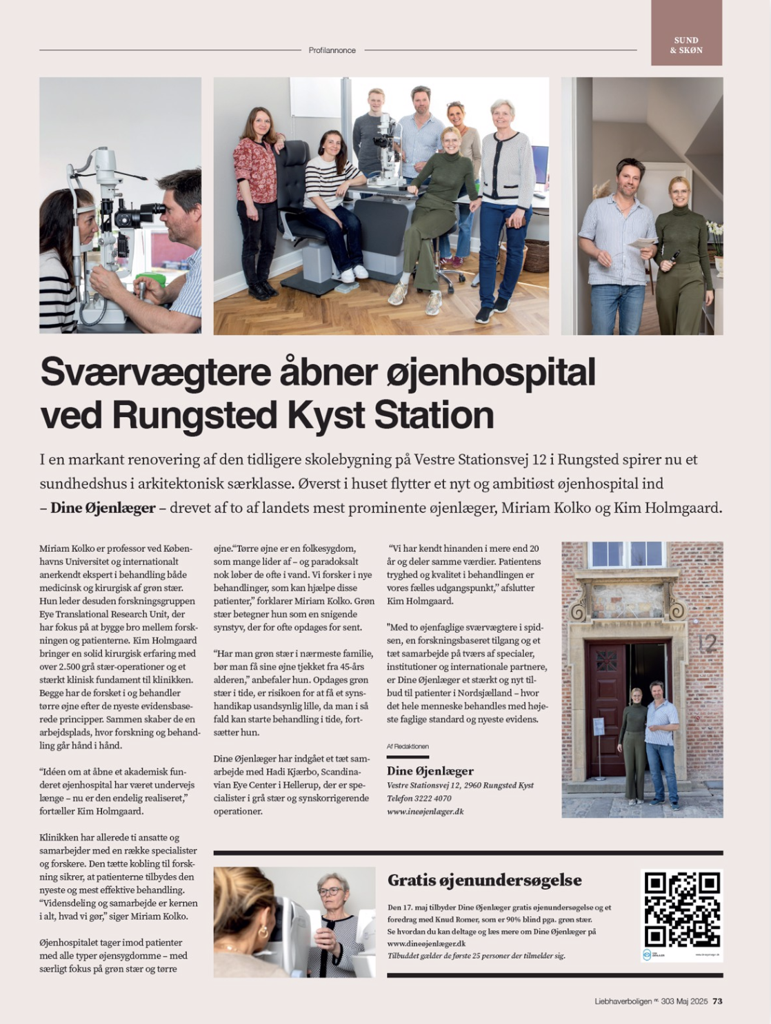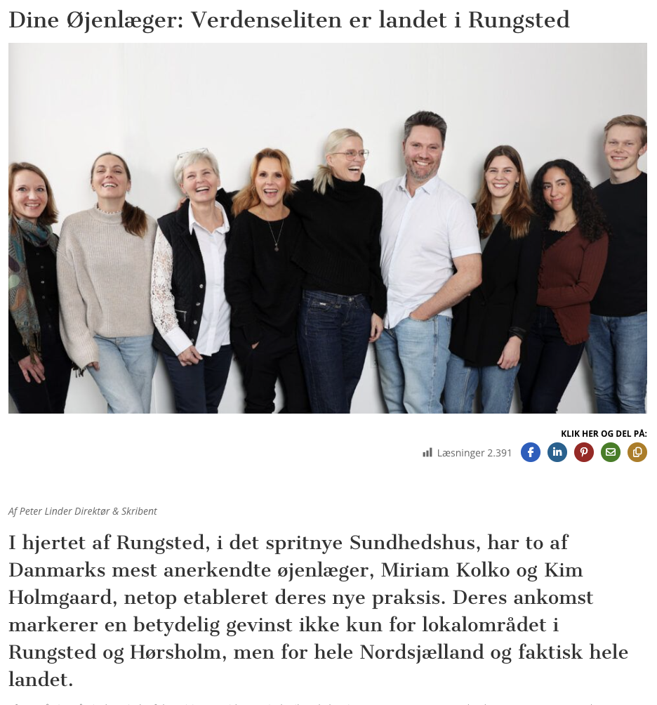 Artiklen belyser baggrunden og visionerne bag vores nye klinik, og hvordan vi med engagerede øjenspecialister ønsker at bringe førsteklasses øjenbehandling endnu tættere på lokalområdet. Fokus er på lederskab, samarbejde og det gode patientforløb.